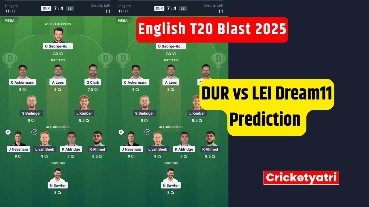 DUR vs LEI Dream11 Prediction in Hindi, Fantasy Cricket, Pitch Report, Dream11 Team, T20 Match, English T20 Blast 2025