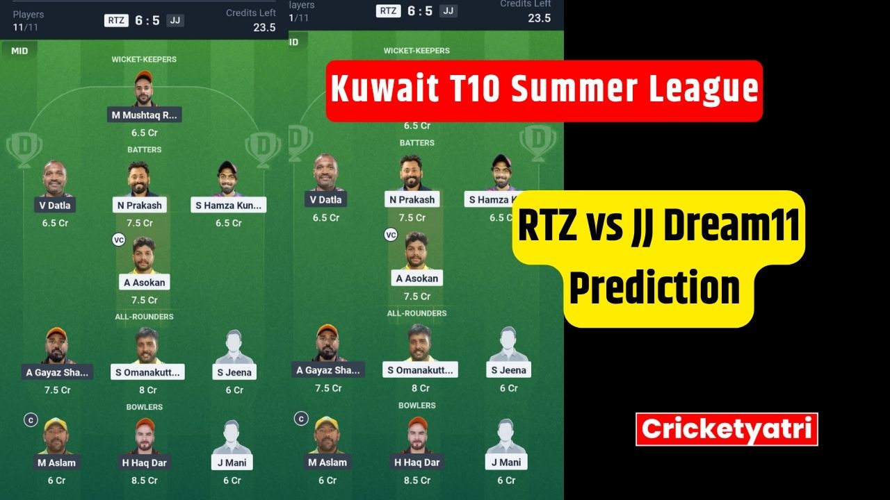 RTZ vs JJ Dream11 Prediction in Hindi, Fantasy Cricket, Pitch Report, Dream11 Team, T10 Match, Kuwait T10 Summer League