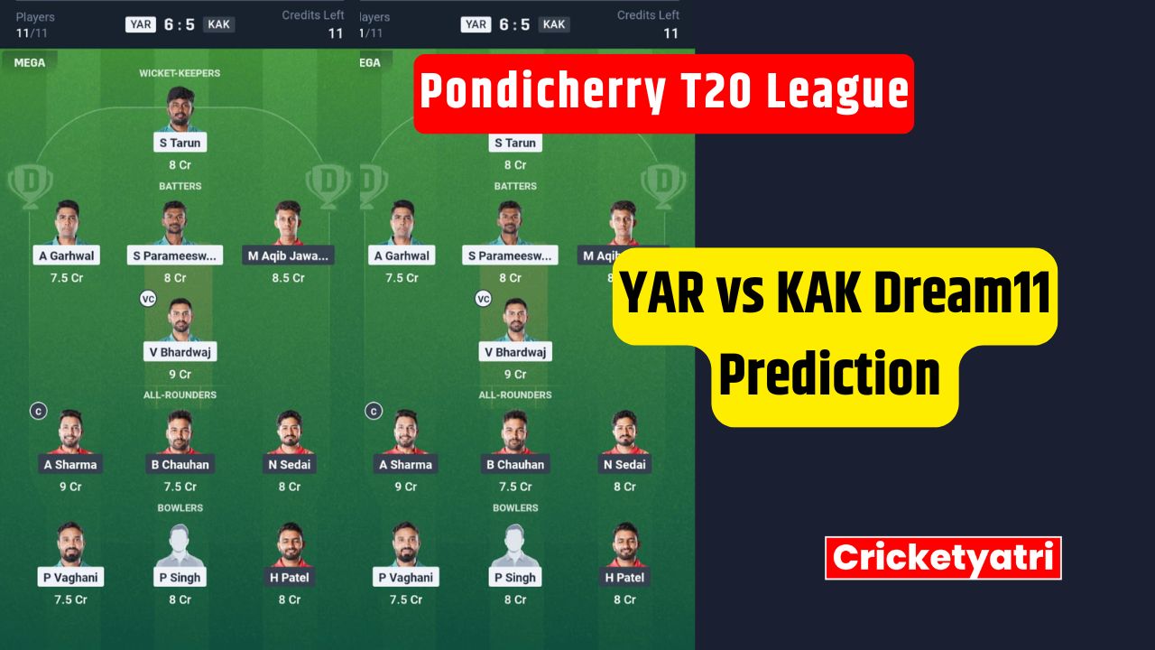 YAR vs KAK T20 Match 18 JULY को Puducherry, IND में खेला जाएगा। यह मैच 6:00 PM(IST) बजे शुरू होगा। क्रिकेट में अपडेट रहने के लिए क्रिकेट यात्री से जुड़े रहे।